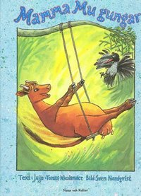 - Du är en ko Mamma Mu, sa kråkan. Kor. Gungar. Inte. - Nej just det, sa Mamma Mu. Det är väl synd om kor som aldrig får gunga. - Synd! ropade Kråkan. Krax! Kor går omkring och betar. Och så ligger dom och tuggar och glor. Och så går dom in.